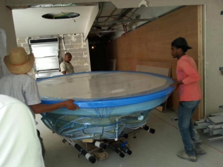 מערכת ספא גלישה קוטר 230 ס”מ בתקן ציבורי משרד הבריאות , חדר מכונות כולל מערכות בקרה ,מערכות בקרת כימיקלים ,בור איזון ומערכות סינון בהתאמה לתקן משרד הבריאות